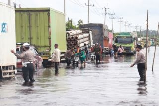 Petugas gabungan dari kepolisian, TNI, BPBD, dan instansi terkait lainnya terus disiagakan di lokasi untuk mengatur lalu lintas dan memberikan bantuan kepada masyarakat. Mereka juga memantau perkembangan ketinggian air dan kondisi jalan secara berkala. (Ajomarbun)