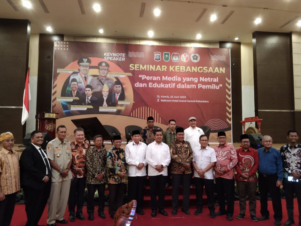 keynote speaker pada seminar Peran Media yang Netral dan Edukatif dalam Pemilu, di salah satu hotel di Pekanbaru, Kamis (22/6/2023).