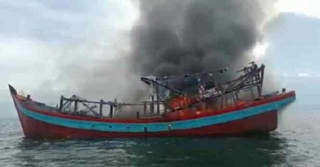 Entah siapa mekomandoinya, seketika terjadi peristiwa pembakaran kapal ikan asal Sumatera Utara tersebut dinakhoda Angguan (54), warga Titimas Rengas Pulau Medan, dengan 10 ABK itu.
