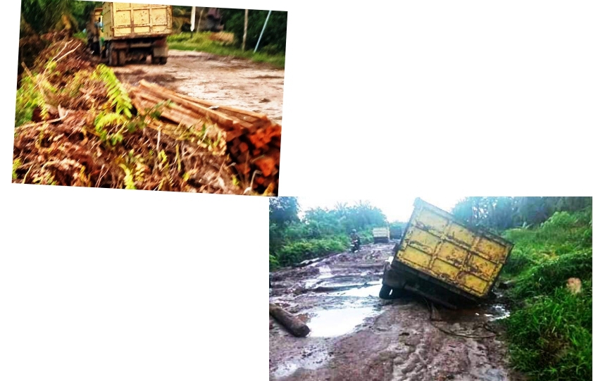 Karena diketahui, rusaknya jalan tersebut dikarenakan maraknya aktivitas truk-truk bermuatan berat yang diduga dibiarkan ini telah berlangsung bertahun-tahun dengan tanpa penindakan berarti. Dimana, terlihat lalulintas kendaraan truk pengangkut kayu yang diduga itu berasal dari aktivitas ilegal logging serta truk dan tronton pengangkut buah kelapa sawit milik PT SSS.