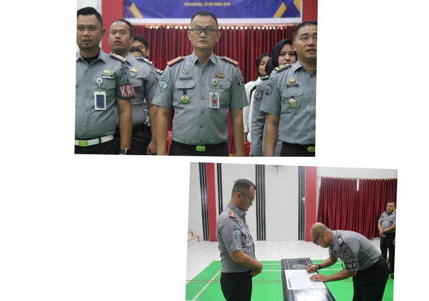 DERAKPOST.COM – Upaya memperkuat komitmen seluruh jajaran Pemasyarakatan terhadap pemberantasan peredaran gelap narkoba, handphone ilegal, dan barang terlarang lainnya di dalam Lapas, Direktorat Jenderal Pemasyarakatan (Ditjenpas), Kementerian Imigrasi dan Pemasyarakatan, menyelenggarakan kegiatan Penandatanganan Komitmen Bersama Jajaran Pemasyarakatan secara serentak yang diikuti seluruh Unit Pelaksana Teknis (UPT) Pemasyarakatan di seluruh Indonesia tak terkecuali Lembaga Pemasyarakatan (Lapas) Kelas IIA Pekanbaru, Senin (20/10/2025).
