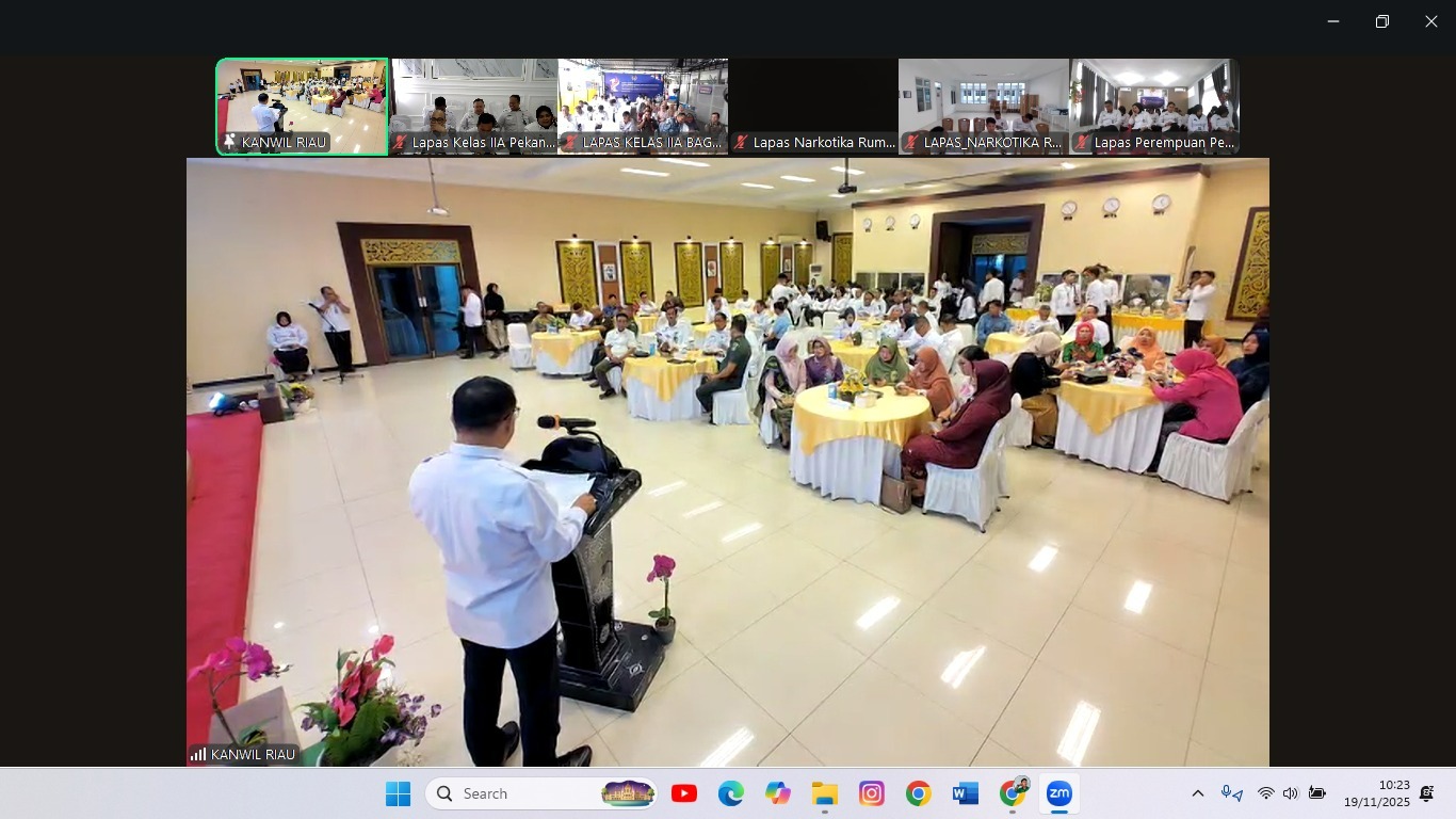 DERAKPOST.COM – Lapas Kelas IIA Pekanbaru turut serta mengikuti kegiatan Tasyakuran Hari Bakti Kementerian Imigrasi dan Pemasyarakatan (Kemenimipas) ke-1 Tahun 2025 yang diselenggarakan di Aula Ismail Saleh, Rabu (19/11/2025). Acara ini merupakan momentum penting untuk merefleksikan perjalanan satu tahun pembentukan Kemenimipas dalam upaya meningkatkan kualitas pelayanan hukum, imigrasi, dan pemasyarakatan di seluruh Indonesia.