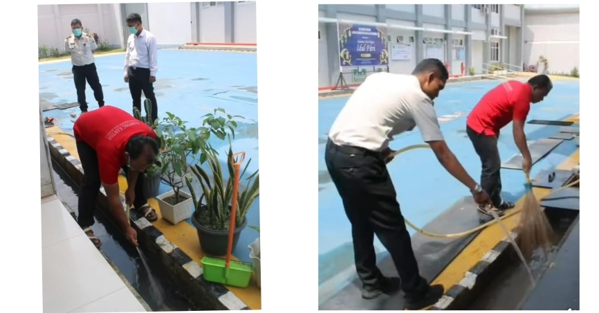 Lapas Kelas IIB Narkotika Rumbai Laksanakan Giat Pembersihan Drainase dan Saniitasi