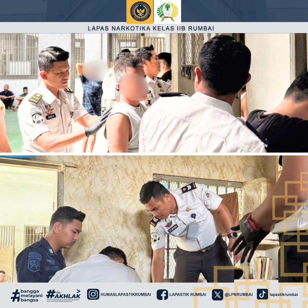 Kegiatan Lapas Narkotika Rumbai ini melalui bidang Adm. Kamtib menggelar razia rutin sebagai bentuk deteksi dini serta meningkatkan keamanan dan ketertiban yang di Lapas Narkotika Kelas IIB Rumbai sekaligus untuk memutus mata rantai peredaran Narkoba serta tindakan penipuan yang kerap melibatkan penghuni Lapas.