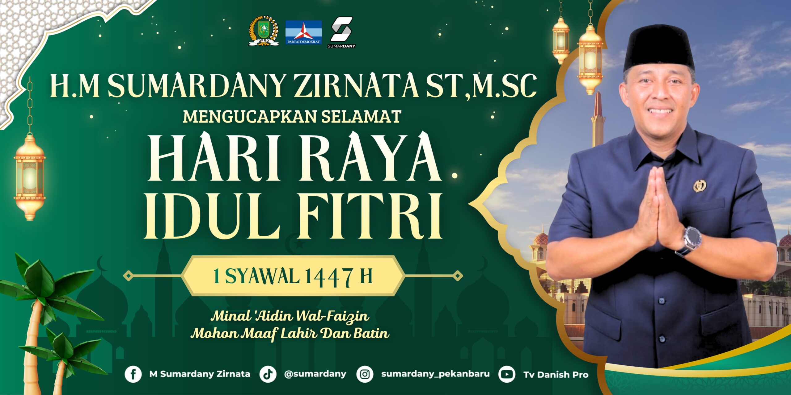 “Usai sebulan penuh menempa diri di bulan suci, momen Idulfitri 1447 H/2026 M, yang menjadi waktu tepat membuka lembaran baru. Legislator Riau, HM Sumardany Zirnata ST MSc, mengajak seluruh umat Muslim untuk menjadikan hari kemenangan ini sebagai jembatan untuk saling memaafkan dan mempererat kembali silaturahmi yang mungkin sempat renggang,” ucapnya.