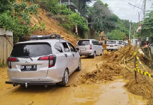 Dikutip tribunpadang, material longsor berupa tanah dan bebatuan yang berasal dari tebing pinggir jalan yang terban hingga menimpa badan jalan.
