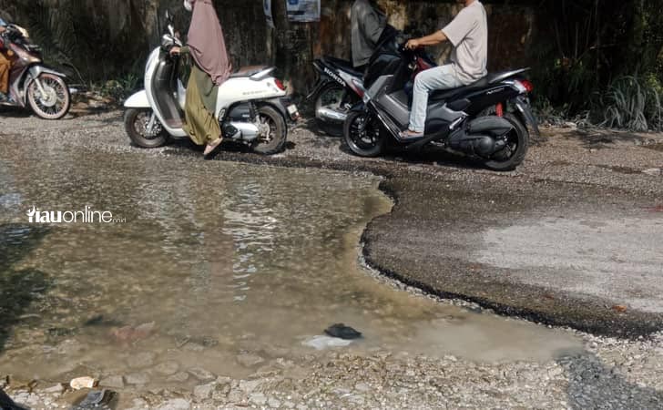 “Karena jalannya dipenuhi air jadi, orang pada lewat aja padahal jalannya berlubang cukup dalam, jadi kami inisiatif jebolkan tembok Unri buat saluran air,” kata Mahasiswa Unri Muhammad Rafi.