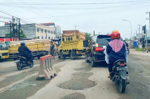Selain memperlambat arus lalu lintas, kondisi jalan yang berlubang besar dan dalam tersebut dinilai telah berada pada level mengancam keselamatan, khususnya bagi pengendara sepeda motor yang setiap hari melintas di kawasan padat aktivitas itu.