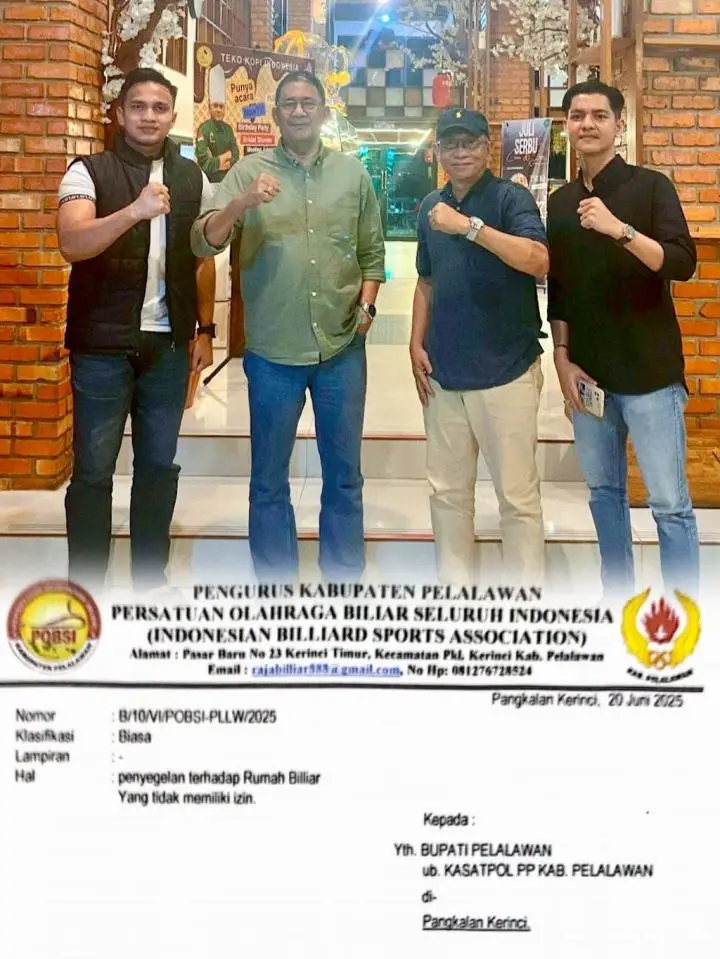 Menyikapi itu, Persatuan Olahraga Billiard Seluruh Indonesia (POBSI) Pelalawan, kini langsung bertindak dengan melayangkan surat ke Bupati Pelalawan cq Kasatpol PP Pelalawan, tertanggal 20 Juni 2025. Yakni meminta dilakukan penertiban.