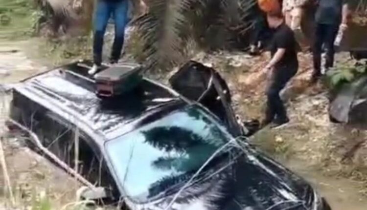 Apesnya, saat akan menuju Tanjung Buton, kecelakaan tunggal menerpa, yangĀ hingga masuk parit dan nyaris tenggelam. Bahkan sejumlah foto dan video beredar yang juga menunjukkan kondisi mobil itu yang sudah tercebur di dalam parit.
