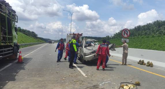DERAKPOST.COM – Jalan Tol Permai kembali minta korban, satu unit mobil Pickup Suzuki Carry BM 8249 FA alami kecelakaan, hari Jumat (10/11/2023). Dalam peristiwa itu, satu penumpang mobil pengangkut durian meninggal dunia.