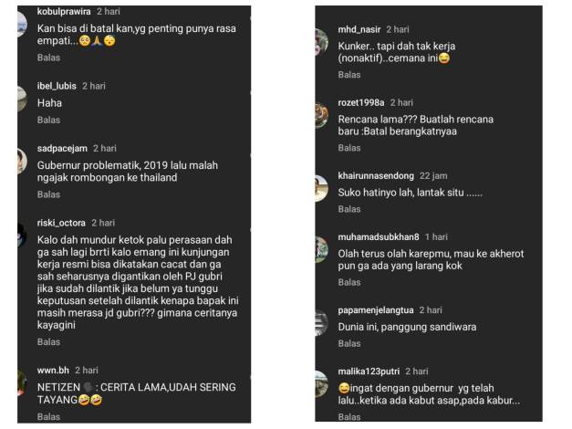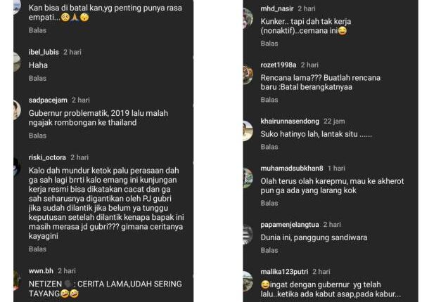 Dari akun Instagram resmi CAKAPLAH, tampak tidak sedikit netizen yang tak puas dengan alasan Gubernur Riau ke luar negeri di tengah kabut asap dan bertepatan menjelang akhir masa jabatan.