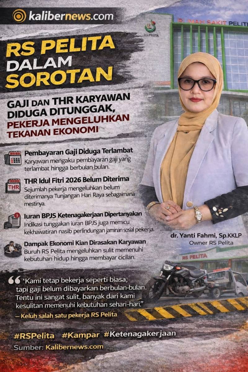 DERAKPOST.COM – Kini, Rumah Sakit (RS) Pelita itu menjadi sorotan, setelah muncul dugaan keterlambatan pembayaran gaji, Tunjangan Hari Raya (THR), serta iuran BPJS bagi sejumlah karyawan yang bekerja di rumah sakit tersebut.