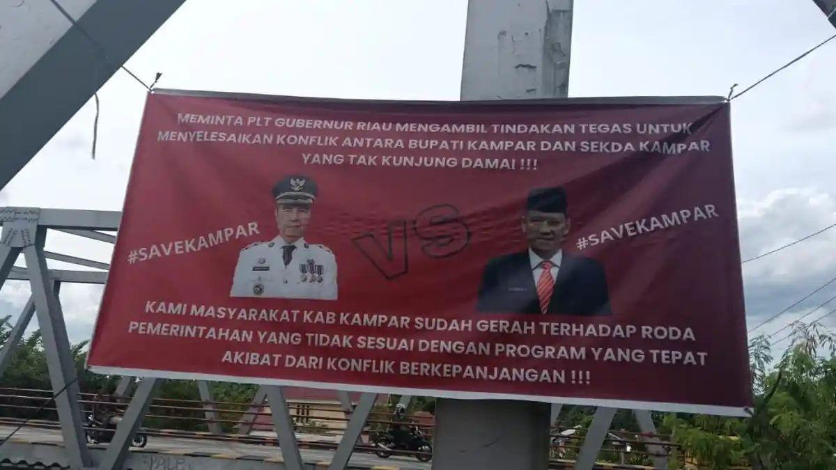 Pasca Bupati Kampar Teken Pensiun Dini Sekda Hambali, Muncul Spanduk Singgung Konflik