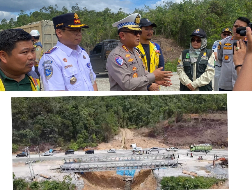 DERAKPOST.COM – Direktur Lalu Lintas Polda Riau Kombes Pol Taufiq Lukman Nurhidayat dan instansi terkait laksanakan kegiatan pengecekan Jalan Lintas Riau – Sumbar, di KM 106 – 107 Tanjung Alai, XIIi Koto Kampar, Kabupaten Kampar sempat putus beberapa waktu lalu.