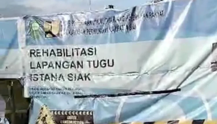 Tetapi saat sedang pengerjaan ini terlihat baliho batas pagar proyek rehabilitasi lapangan Tugu Istana Siak dirobek orang tak dikenal (OTK). Sejak akhir Mei 2023 hingga sekarang, sudah tiga kali baliho itu dirusak memakai pisau “cutter”.