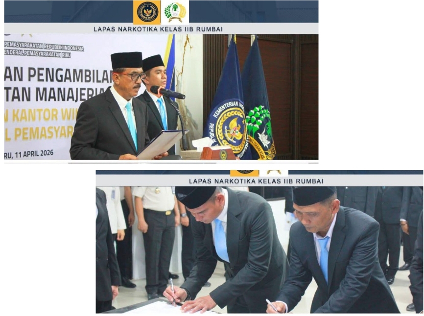 Kegiatan ini dipimpin langsung oleh Kepala Kantor Wilayah Direktorat Jenderal Pemasyarakatan Riau, Maizar, serta dihadiri oleh para pejabat struktural, Kepala Unit Pelaksana Teknis Pemasyarakatan tanpa terkecuali Kepala Lapas Narkotika Kelas IIB Rumbai, Reinhards Indra Pitoy, rohaniawan, serta para pejabat yang dilantik beserta pendamping, Sabtu (11/4/2026).