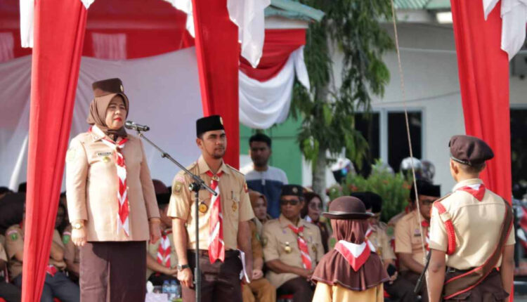 DERAKPOST.COM – Upacara peringatan HUT ke-62 Pramuka di halaman Kantor Bupati, Selatpanjang, Senin (28/8/2023) pagi.