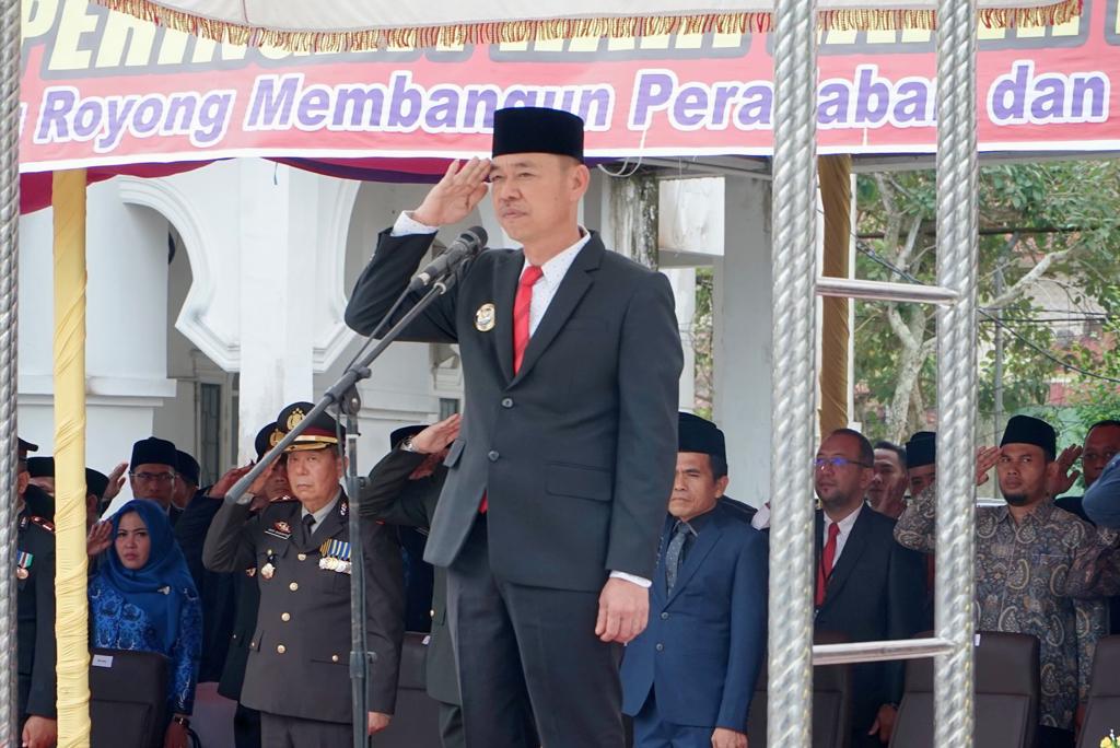 DERAKPOST.COM – Saat ini, Pemerintah Kabupaten Rokan Hilir (Rohil) mengelar upacara peringatan Hari lahir Pancasila 1 Juni 2023 yang dipusatkan di depan Kantor BPKAD, Jalan Merdeka. Dalam upacara tersebut, Bupati Rohil Afrizal Sintong SIP secara langsung bertindak sebagai Inspektur Upacara, hari Kamis (1/6/2023).