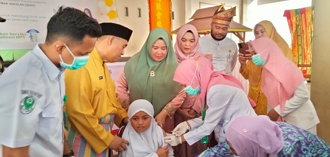 Launching pencanangan antigen baru ini yang ditaja Dinas Kesehatan (Diskes) Rohil. Dibuka secara resmi oleh staf ahli Setdakab Rohil, Firdaus ditandai dengan pemberian vaksin yang secara simbolis kepada siswa kelas lima SD Perguruan Setia Budi.