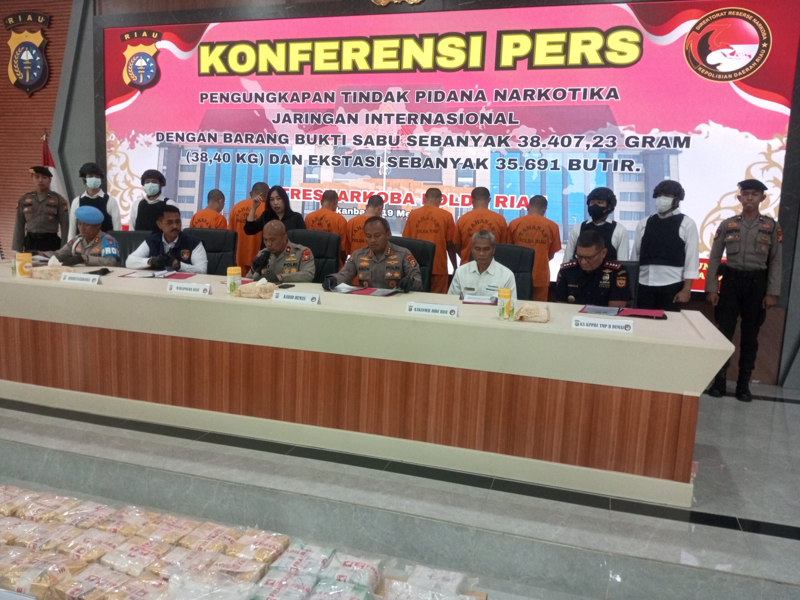 Polda Riau Ringkus Lima Pelaku Jaringan Internasional, Sita 38,40 Kg Sabu Beserta 35.691 Butir Ekstasi