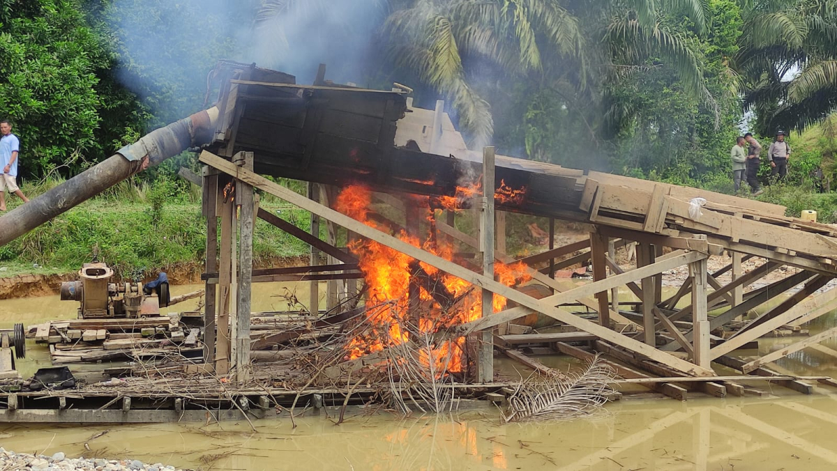 Dia menjelaskan, bahwa rakit PETI yang ditemukan itupun dimusnahkan dengan cara dibakar. Karena pihaknya ini, sudah berulang kali melakukan imbauan serta hingga penindakan. Namun para pelaku masih tetap nekat. Maka, kini dilakukan tindakan terukur merusak dengan cara membakar rakit.