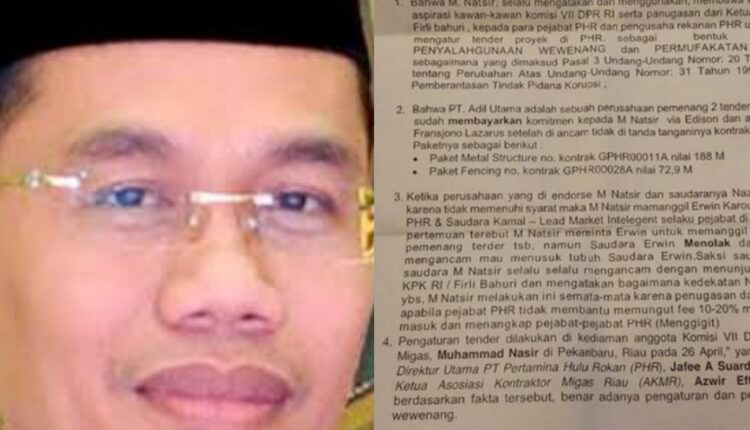 Tak tanggung-tanggung, akun @PartaiSocmed mengunggah dokumen berisi dugaan anggota Komisi VII DPR RI, M Nasir, mencatut nama Ketua Komisi Pemberantasan Korupsi (KPK) Firli Bahuri untuk mendapatkan sejumlah proyek di PT Pertamina Hulu Riau (PHR).