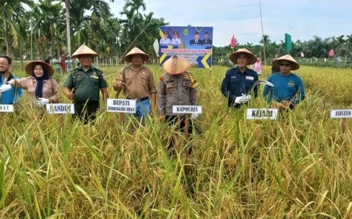 DERAKPOST.COM – Sekretaris Daerah (Sekda) Inhu, Hendrizal lakukan panen raya bersama kelompok tani Mekar Sari. Padi sawah ini program Ketahanan Pangan Dana Desa 2023 di Desa Pasir Kemilu, Rengat, Kamis (7/9/2023).