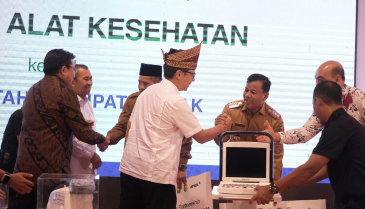 Bantuan ini diserahkan usai penandatangan MoU Public-Private Partnership bersama PT RAPP, Selasa (25/7/2023) di Pangkalankerinci. Kegiatan ini disaksikan langsung oleh Menteri Kesehatan Budi Gunadi Sadikin dan Gubernur Riau Syamsuar.