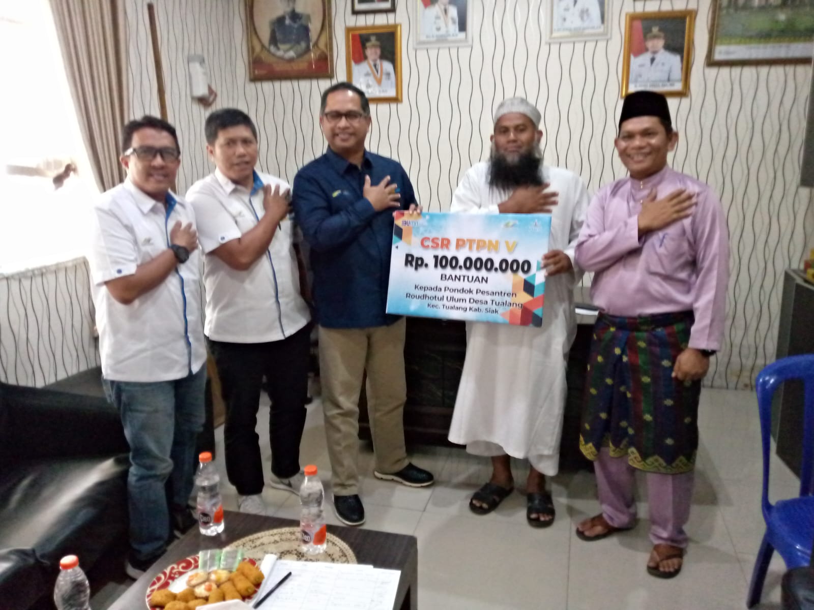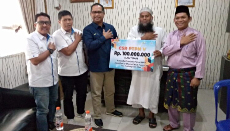 DERAKPOST.COM – PT Perkebunan Nusantara V, salah satu anak perusahaan Badan Usaha Milik Negara (BUMN) yang bergerak di bidang perkebunan kelapa sawit dan karet di Riau kembali menyalurkan program tanggung jawab sosial lingkungan (TJSL) kepada sejumlah pesantren, salah satunya Pesantren yang berlokasi di perkampungan asli Dusun Tualang, Kecamatan Tualang, Kabupaten Siak, Riau.