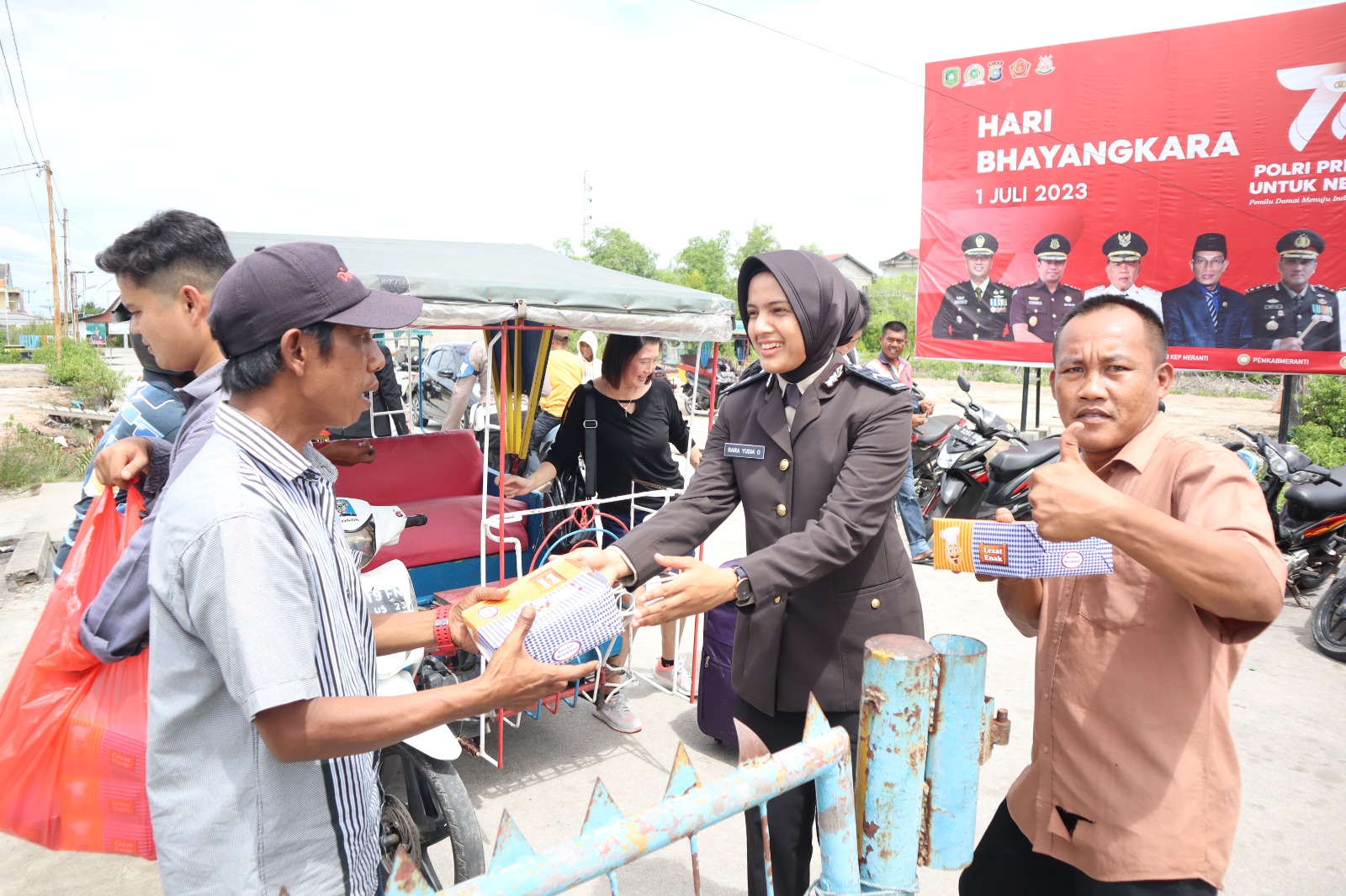 “Kegiatan ini kita lakukan untuk berbagi kebahagiaan bersama masyarakat di pelabuhan Tanjungharapan pada puncak peringatan hari Bhayangkara ke-77 tepat 1 Juli 2023,” ungkap Kapolres Kepulauan Meranti AKBP Andi Yul LTG SH SIk MH,