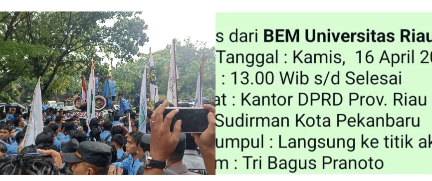 Aksi itu dengan kawalan aparat kepolisian, serta pintu masuk gedung DPRD Riau yang dijaga. Dalam aksi itu menggunakan atribut berupa bendera masing-masing organisasi fakultas dan kemahasiswaan. Mereka yang datang ini menyuarakan sejumlah tuntutan kepada DPRD Provinsi Riau.