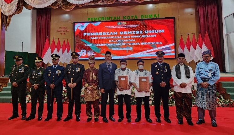 Remisi secara simbolis disampaikan Walikota Dumai, Paisal kepada dua perwakilan warga binaan. Usai mengikuti upacara detik-detik proklamasi secara virtual di Gedung Pondopo, Kamis (17/8/2023).