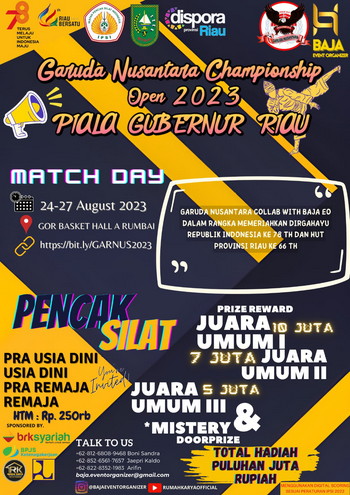 pertandingan pencak silat. Perebutkan piala Gubernur Riau, dan mendapatkan hadiah bernilai puluhan juta rupiah.