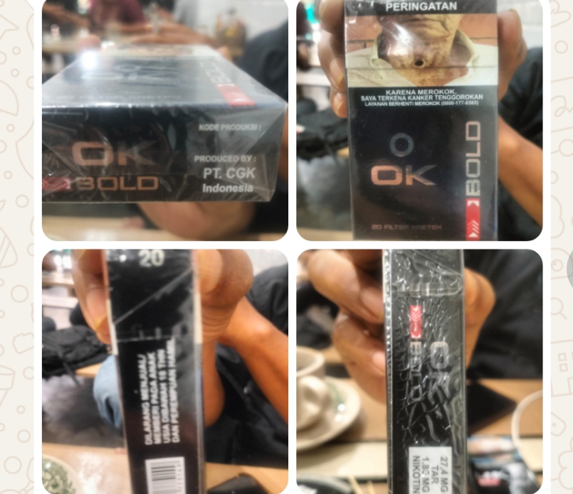 Sekilas tentang gambaran kotak rokok OK BOLD, dengan bertuliskan produced by: PT CGK Indonesia. Dimana, rokok yang berisi 20 batang tersebut tanpa menggunakanya pita Bea Cukai sebagaimana mestinya. Hal itu telah jelas dipastikan merugikan negara dalam pendapatan pajak.