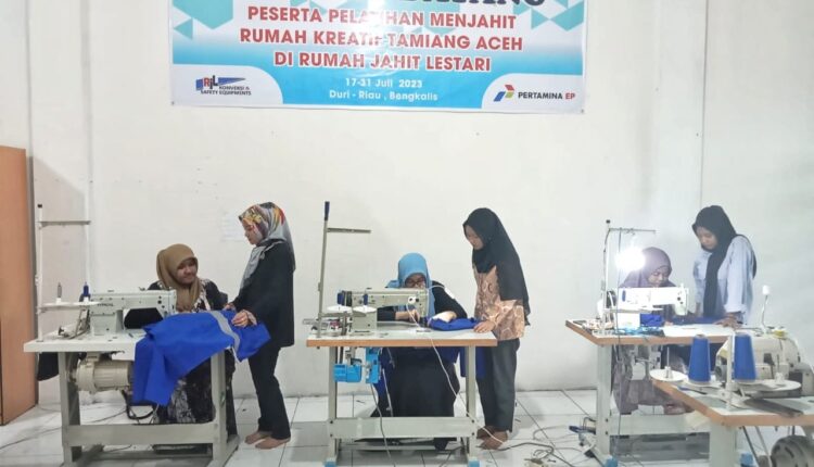 DERAKPOST.COM – Mitra binaanya PT Pertamina Hulu Rokan (PT PHR) yakni Rumah Jahit Lestari (RJL) juga berbagi inspirasi dengan kelompok mitra binaan lainnya. RJL mengajarkan kelompok masyarakat Pembeda Berdaya Program Rumah Kreatif Tamiang binaan PHR Zona 1 Rantau Field untuk menjahit dan memproduksi pakaian coverall (baju kerja lapangan).