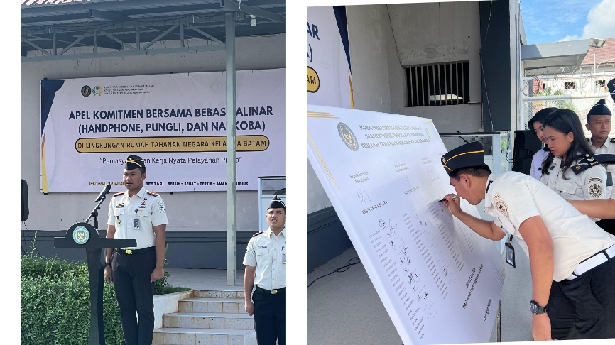 DERAKPOST.COM – Memperkuat integritas dan ciptakan lingkungan pemasyarakatan yang bersih dan bebas dari pelanggaran, Rumah Tahanan Negara Kelas IIA Batam menggelar Apel Komitmen Bersama Bebas HALINAR (Handphone, Pungli, dan Narkoba).