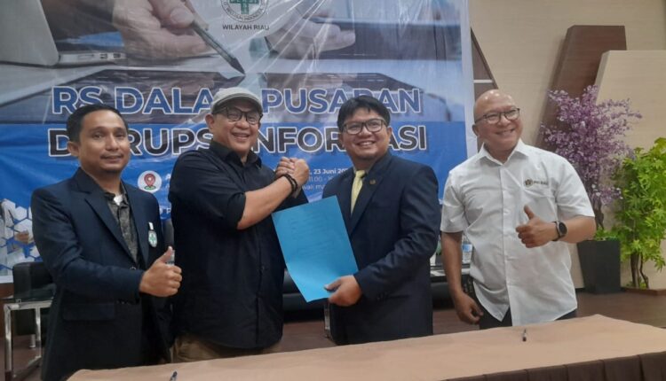 DERAKPOST.COM – Persatuan Wartawan Indonesi (PWI) dan Perhimpunan Rumah Sakit Seluruh Indonesia (Persi) Provinsi Riau menanda-tangani Memorandum of Understanding (MoU) di Lantai 8 Aulia Hospital Pekanbaru, Jumat (23/6/2023).