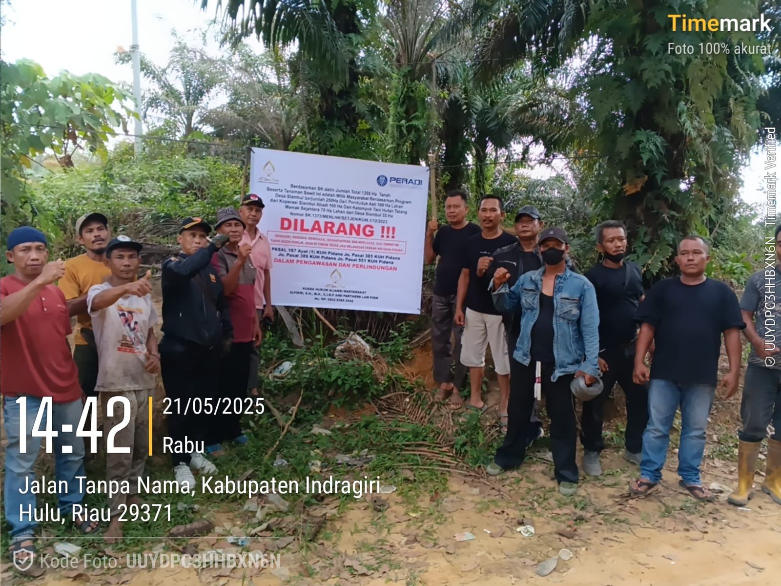 Lanjut nya Lahan Program Masyarakat Dusun Talang Tanjung Dipasang Plang Status Quo Masyarakat Dusun Talang Tanjung Desa Siambul Kecamatan Batang Gansal Kabupaten Inhu melalui Koperasi Siambul Abadi memasang plang himbauan, Rabu 21 Mei 2025.