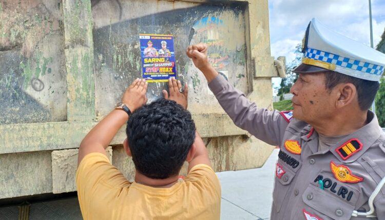 Aksi tersebut terlihat di gerbang pintu masuk jalan Tol, di mana personel Sat PJR Ditlantas Polda Riau aktif memberikan pesan bijak bermedsos, menempelkan stiker anti hoaks. Serta memberikan imbauan tentang tata tertib berlalu lintas kepada pengguna jalan.