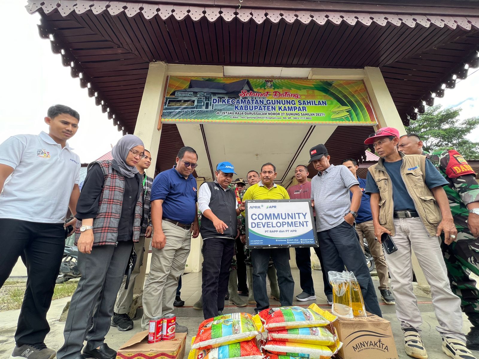 Untuk di Kampar, bantuan dari RAPP diterima oleh Camat Gunung Sahilan Musnaini M.Si di kantor camat, untuk selanjutnya didistribusikan kepada desa yang terdampak banjir.
