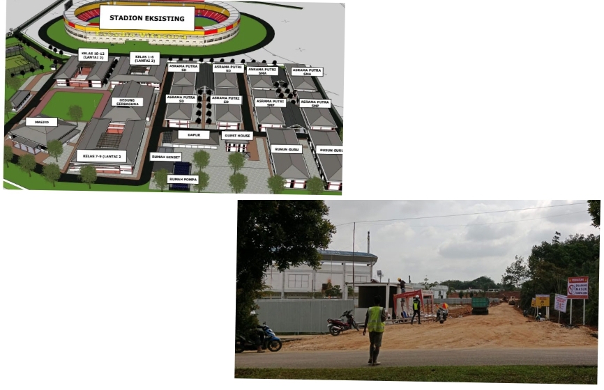 Pekerjaan gedung tengah difokuskan pada pembangunan gedung utama ruang belajar SD, SMP dan SMA. Yang kemudian masjid, asrama guru dan asrama murid. Sekarang ini tengah pemasangan dinding bangunan. “Jadi semuanya sedang kita gesa. Dengan harapan mudah-mudahan itu selesai tepat waktu,” ujarnya.