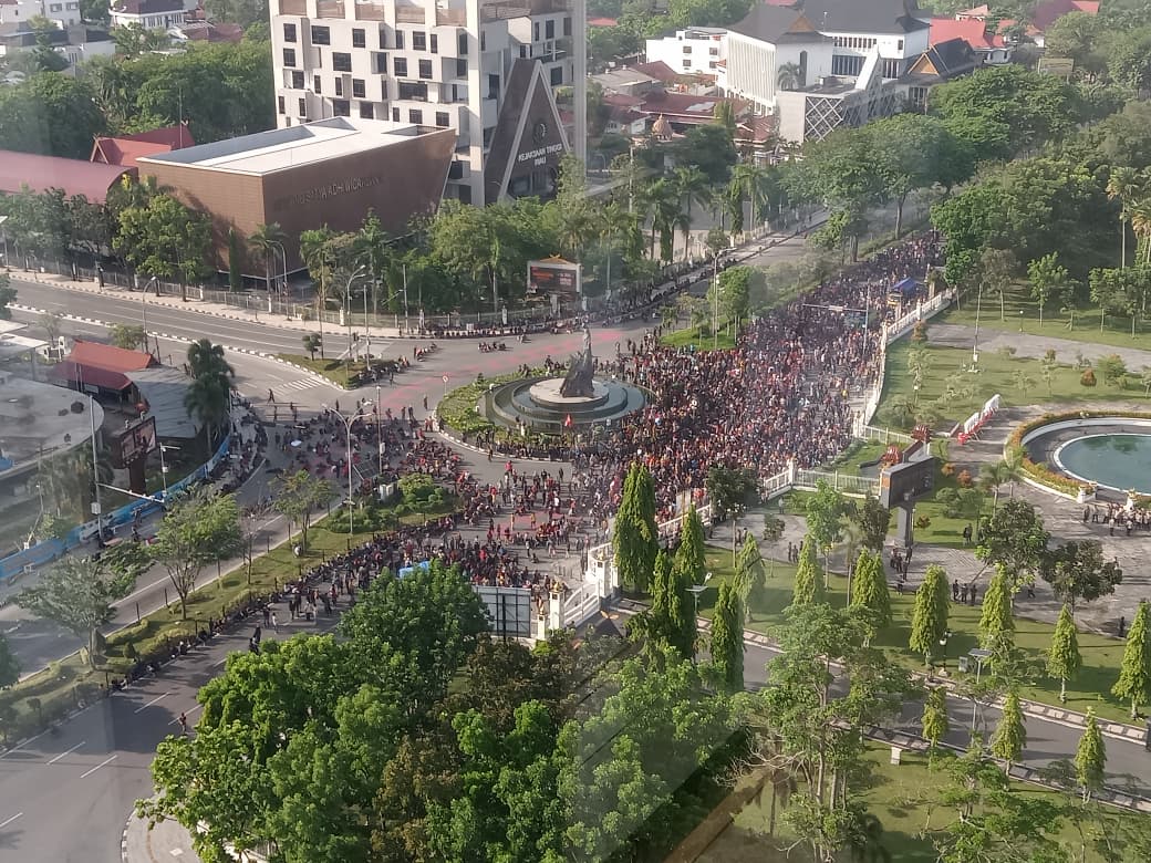 DERAKPOST.COM – Aksi massa di Kantor Gubernur Riau Jalan Sudirman ini dengan halnya menolak relokasi kawasan Taman Nasional Tesso Nilo (TNTN). Aksi dengan mengatasnamakan Aliansi Mahasiswa dan Masyarakat Pelalawan (AMMP). Tetapi ini,