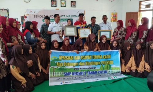 Dukungan moral dan material dari PHE Siak, bersama dengan bantuan dari DLH Rohil, telah membantu SMPN 2 Tanah Putih meraih predikat Adiwiyata tingkat Kabupaten tahun 2019.