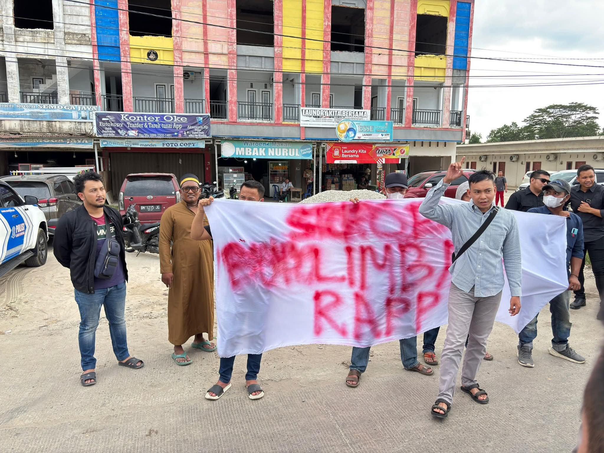 Aksi yang berlangsung di depan Pos 2 PT Riau Andalan Pulp and Paper (RAPP) pukul 14.00 WIB, Ketua Umum KMPKS Agung Maulana mendesak Dirut PT RAPP Mulia Nauli itu bertanggung jawab atas dugaan pembuangan limbah berbahaya yang diduga menjadi penyebab matinya ratusan ikan.