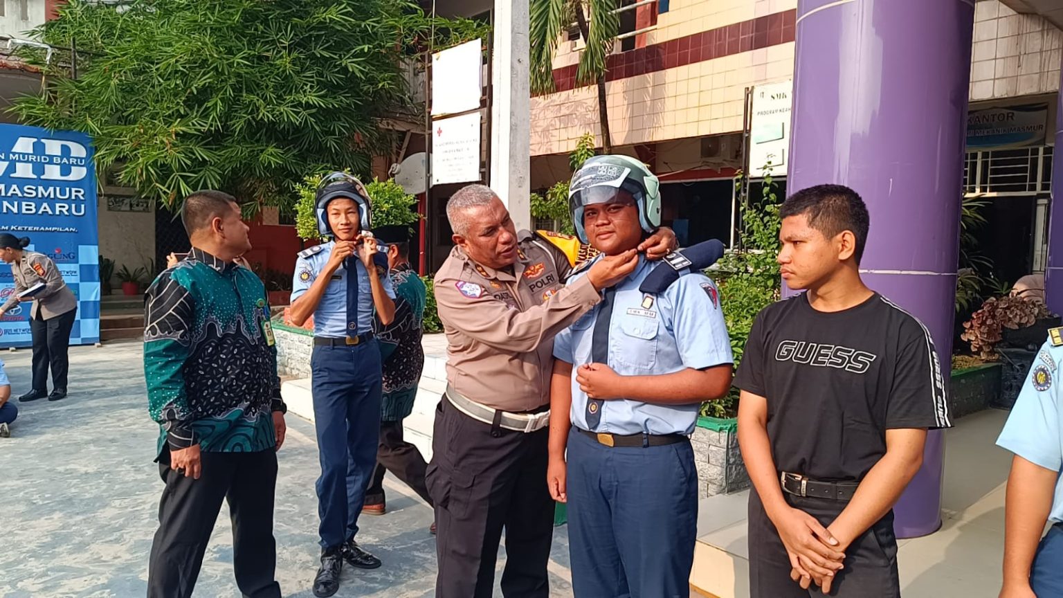 Tanamkan Disiplin Lalu Lintas Sejak Dini, Ditlantas Polda Riau Gelar Kegiatan Police Goes To School di SMK Masmur