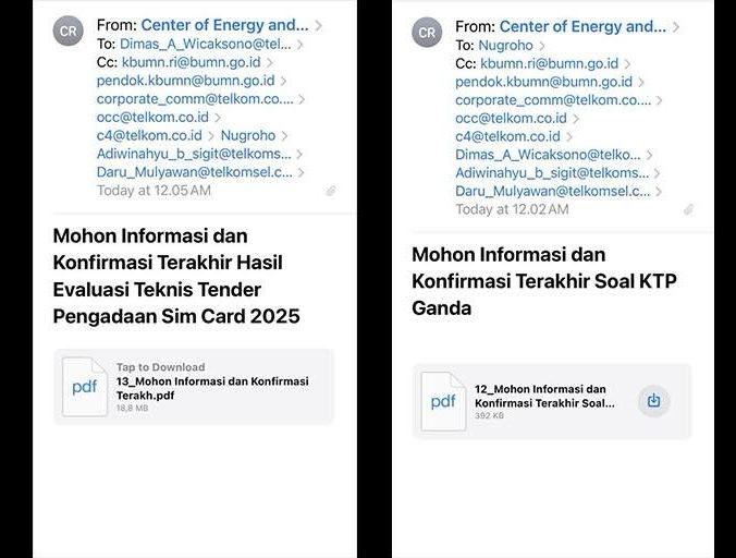 Tak hanya itu, lanjut Hengki, CERI juga sudah melayangkan surat konfirmasi terakhir kepada VP Commerce, Area and Enabler Procurement PT Telkomsel Dimas A Wicaksana terkait dugaan kejanggalan pelaksanaan tender pengadaan SIM Card Tahun 2025.