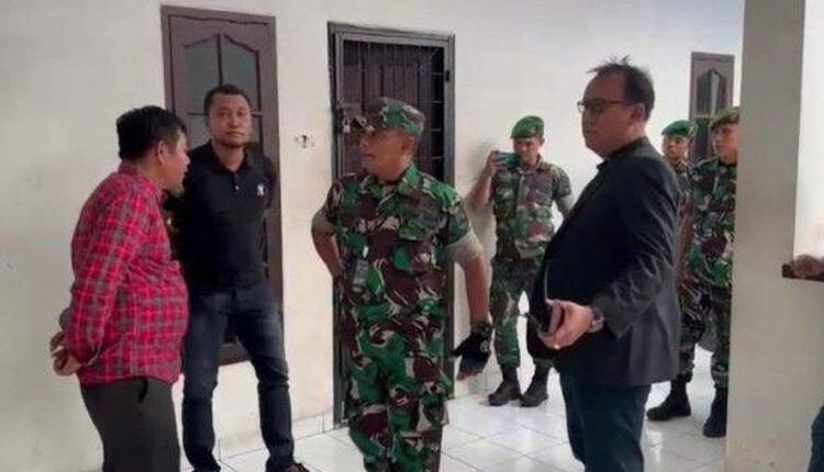 Puluhan prajurit TNI keluar masuk gedung sambil membanting pintu. Seorang pria terlihat berbicara dengan Kompol Teuku Fathir dengan nada tinggi. “Kami perintah komandan. Kalau belum selesai, enggak pulang. Kalau perlu diratakan saja ini,” kata salah satu pria diduga anggota TNI berpakaian preman.
