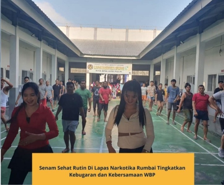 DERAKPOST.COM – Lembaga Pemasyarakatan (Lapas) Narkotika Kelas IIB Rumbai kembali menggelar senam pagi untuk warga binaan pemasyarakatan (WBP). Kegiatan ini merupakan rutinitas pagi dan diselenggarakan rutin setiap minggunya. Sabtu (31/1/2026).