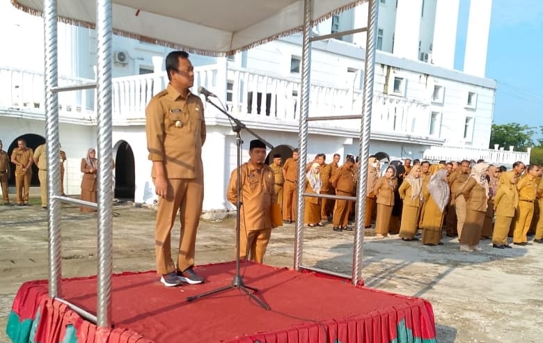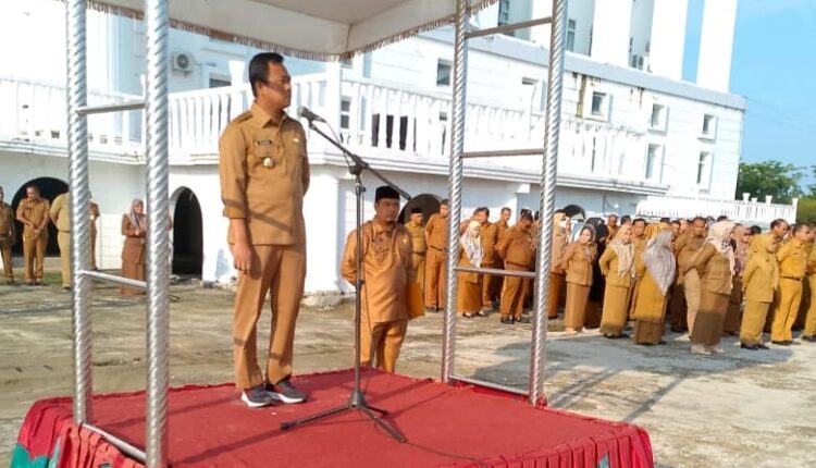 DERAKPOST.COM – Wabup Rohil Sulaiman, menjadi pembina apel, di halaman Kantor Bupati. Dalam hal ini, ia mengatakan, sejak terbentuk kabupaten 24 tahun, Kabupaten Rohil ini selalu praktikkan pesta demokrasi tanpa kekacauan.
